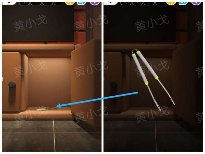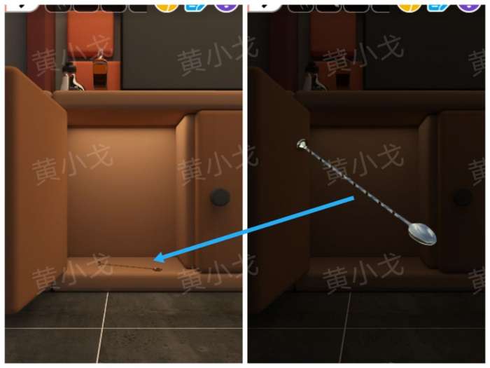 23.点击餐桌上的试管,用【勺子】捞出里面的【硬币】