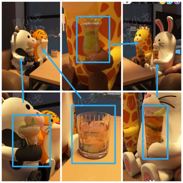 [铁塔]场景动物们喝的酒的品类:老虎-边车鸡尾酒、奶牛-玛格丽特酒、长颈鹿-菠萝汁朗姆酒、兔子-长岛冰茶