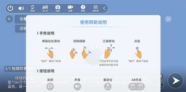 5、AR教学页面操作使用说明: