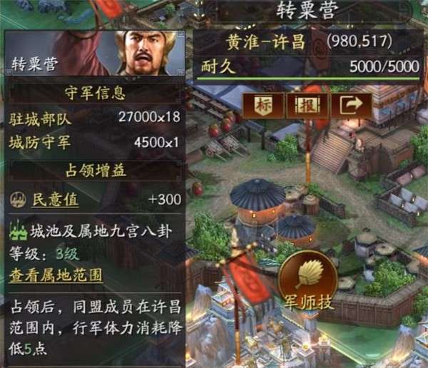 3、另外还有一些特色建筑可以获得一些战场中的额外效果,例如在战场范围内的区域作战可以获得九八效果,增加经验、增加战功,伪装兵种形态、降低行军体力消耗等。