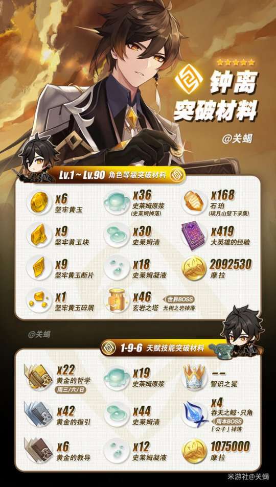 突破材料清单: