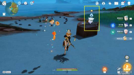 我们传送到花羽会左侧的七天神像处,然后前往左下角的沙滩处