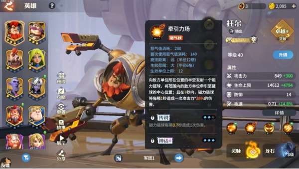 第二个怒气技能牵引立场,能够丢出一个磁力链球,造成大量持续伤害,同时能将敌方单位聚拢。