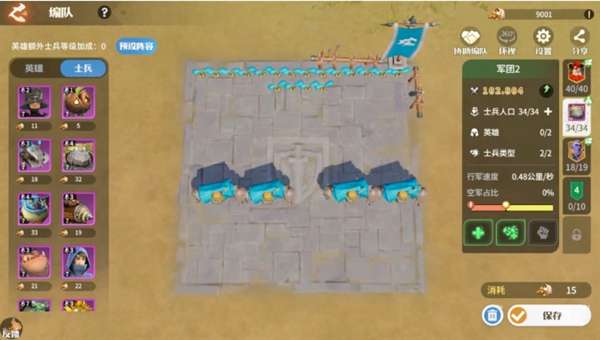 这套阵容常规的兵种搭配,可以选择前排带4支刚毅巨人,后排全部带巨力橡果。