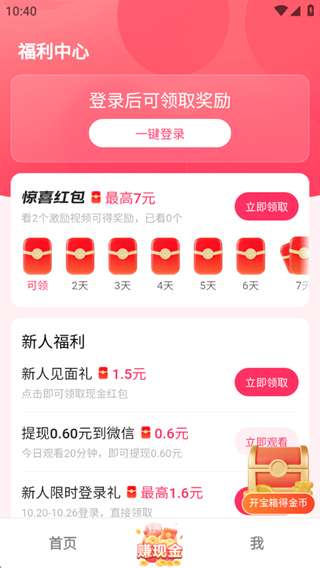 3、进入福利中心可以登录之后领取奖励,还可以签到得奖励;