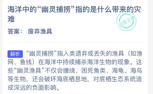 以上就是海洋中的“幽灵捕捞”指的是什么带来的灾难?神奇海洋今天答案最新2026年1月12日分享,更多相关攻略内容,请点击关注pk游戏网更新!