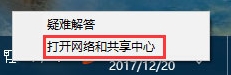 1、在桌面上的【网络】图标上单击右键,选择【打开网络和共享中心】;