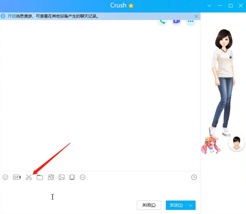 打开腾讯qq,任意打开一个好友对话框,点击下方的截图。