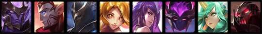 曙光女神-蕾欧娜、皮城执法官-蔚、刀锋舞者-艾瑞莉娅、魂锁典狱长-锤石(可换猴子)、时间刺客-艾克、寒冰射手-艾希(可换提莫)、暗夜猎手-薇恩、无双剑姬-菲奥娜