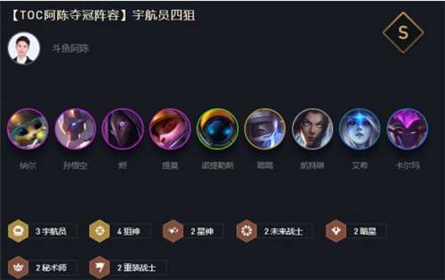 这套阵容正是由前段时间的比赛中脱颖而出,前排有强大的坦度,后排双C提莫和烬也能将伤害拉满,再搭配上星神等羁绊的存在,续航能力也非常不错。