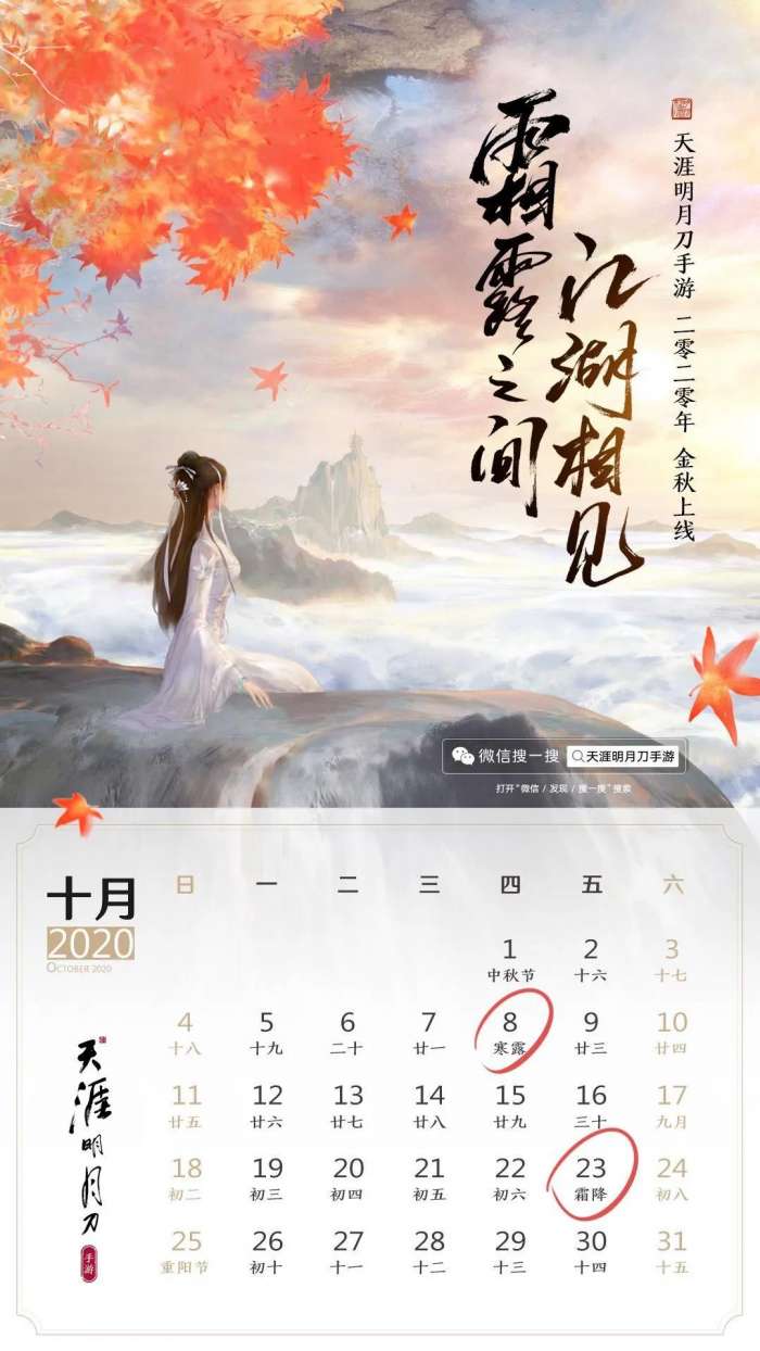 霜露之间、江湖相见!《天涯明月刀手游》定档金秋十月!