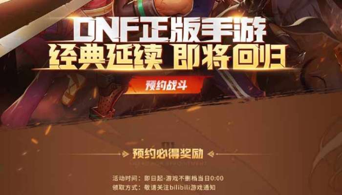 dnf预约入口:http://dnfm.biligame.com/yyzt/