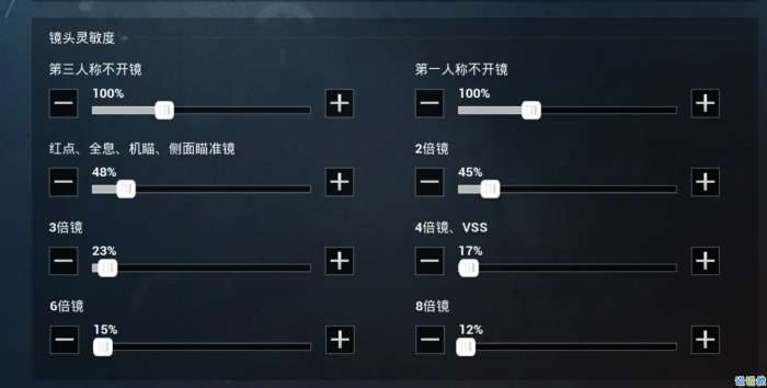 2倍镜158%、3倍108%、4倍镜101%、6倍镜67%、8倍镜30%;