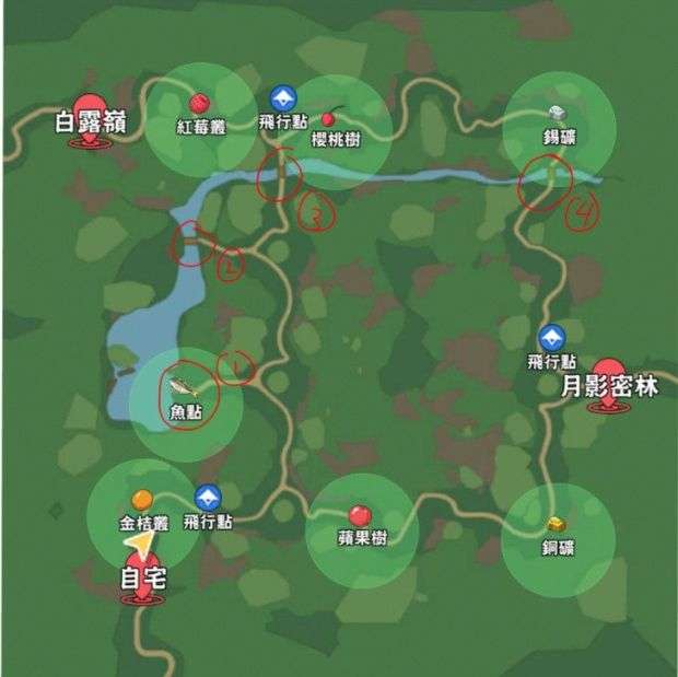 最后,森林里面其实是可以钓鱼的,大概有以下4个点