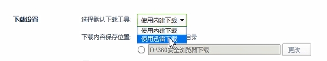 在下载设置中将默认下载工具从使用内建下载改为使用迅雷下载。