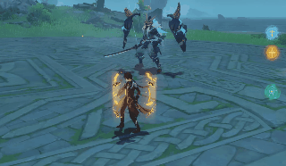 如果是冰属性幻影则连携攻击为同时的风车斩,幻影处为大范围的冰属性圆形aoe(注意与普通的风车斩的环形aoe不同,幻影周围是有攻击判定的),本体处是蓄力时带有风场的小范围风属性aoe。只要到达本体附近,且不在两者之间即可保证完全躲开这个技能。