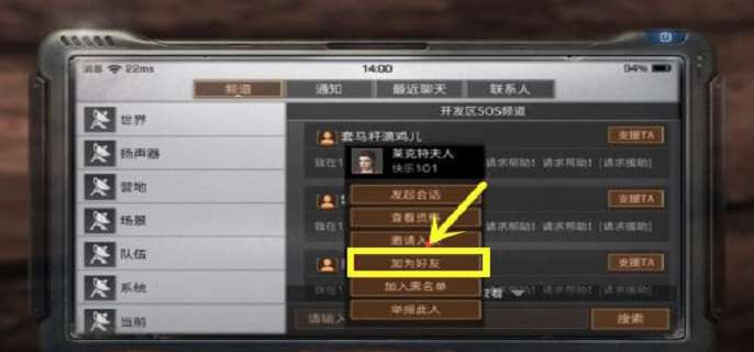 总而言之,玩家可以在世界频道中找意趣相投的人加好友,也可以直接在联系人栏中根据条件加好友。