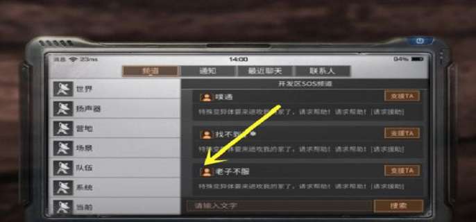 5、此外,在下图页面的上方有频道、通知、最近聊天以及联系人四个功能,玩家也可以点击进入到【联系人】页面来添加好友。