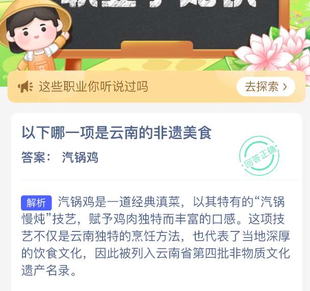 以上就是以下哪一项是云南的非遗美食?支付宝蚂蚁新村最新答案2026年4月13日,更多精彩内容,请点击关注pk游戏网更新!
