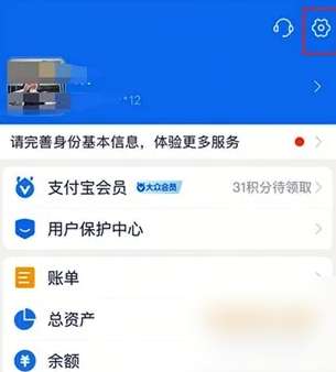 打开支付宝,点击右下角的【我的】进入,点击【设置】进入。