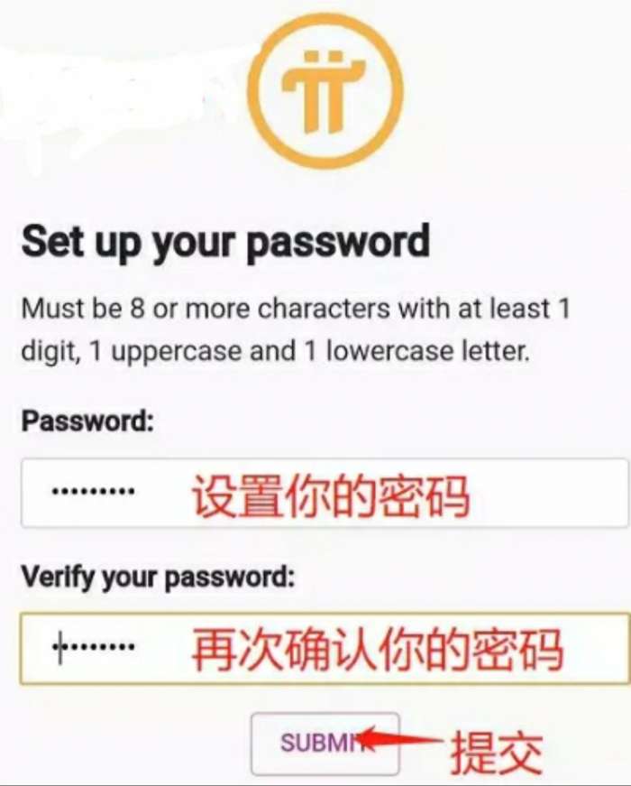 Passworld是(输入密码),Verlfy you password是(确认密码),然后点“SUBMIT”提交。设置密码注意8位及以上,里面必须包含至少一个大写字母以及小写字母