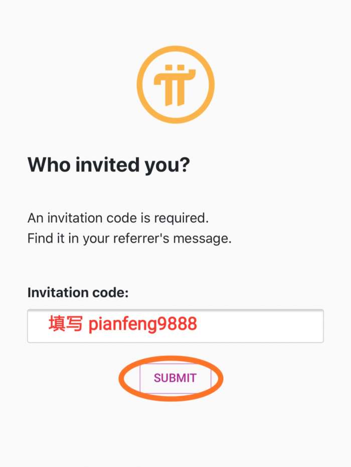 2、Invitation code 这里输入邀请码:pianfeng9888 ,然后点“SUBMIT”提交。
