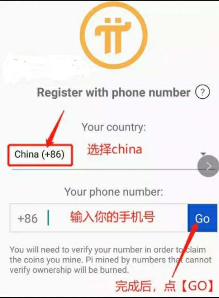 下图这里找到并选择China(+86),然后输入手机号,点“GO”。如果网速慢加载不出来就点try again再试。
