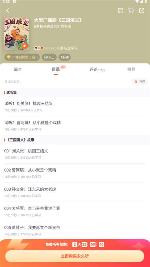 4、添加好课程后,前往书房已购板块即可进行免费听