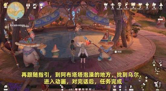 再次跟随指引,去找菇菇王泡澡地方和乌尔集合,走进,进入动画;