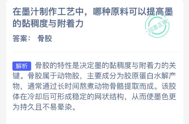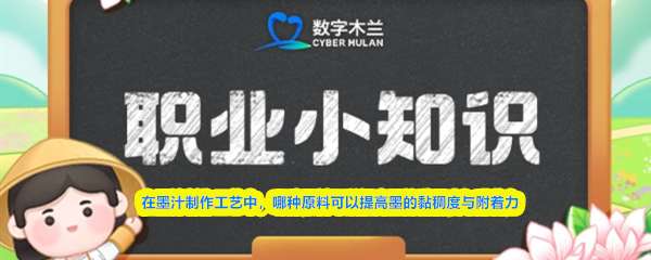 在墨汁制作工艺中,哪种原料可以提高墨的黏稠度与附着力?【蚂蚁新村每日一题】2026年3月18日题目新鲜上线啦!每日坚持答题,不仅能积累木兰币为小镇建设添砖加瓦,更有惊喜奖励等你来拿。只要答对今日题目,即可立即享受“产速+3/时”的加速福利,让你建设小镇的步伐更快一步。轻轻一点,智慧与收获双丰收,快来参与吧!
