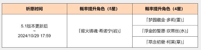 1、活动期间,限定5星角色希诺宁的祈愿获取概率大幅提升