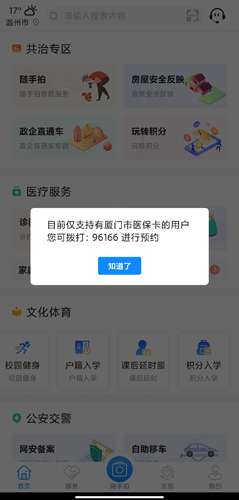 2、该软件仅支持有厦门医保卡的用户,没有的话可以拨打电话96166进行预约。