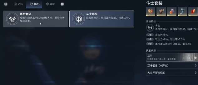 对于开荒玩家而言,一开始没有必要去追求完美的套装,随意的凑一整套即可,优先选择主线升级输出的角色,再进入到后期可以选择炼金套装或者是其他的输出套装。辅助角色就可以选择搭配辅助套装。如果没有凑齐套装堆基础属性,也可以正常的玩耍。从目前的版本来看,辅助套装的强度比较低,所以大家一定要懂得废物利用,不要强行的培养,但是后期到底会怎么样,可能会有调整。