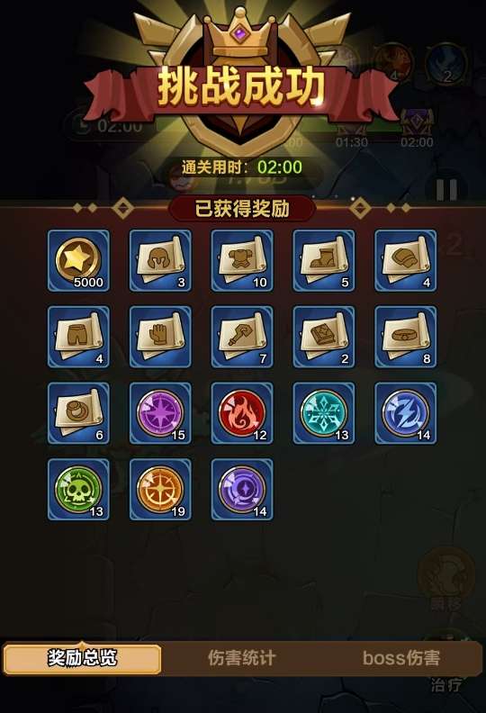 完成世界之战的挑战后,玩家可拿到装备升级道具(图纸),可在装备锻造功能里提升角色的基础属性,还有大量的各系元素经验可领,方便玩家去进行技能的升级。奖励的丰厚程度与玩家们在关卡内坚持的时间成正比,关卡结束后玩家依然存活时,能拿满奖励。此外,玩家参与世界之战的次数满足要求后,还可领取额外的参与奖励,该奖励是世界之战的保底奖励,只要参与就有奖,可拿到钻石和普通宝箱券,即便玩家没能在boss的攻击中存活到关卡结束,也不影响自己去拿奖励。
