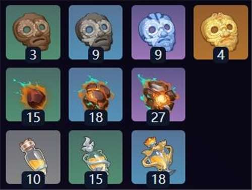 2、聚燃的石块*15、聚燃的命种*18、聚燃的游像眼*27