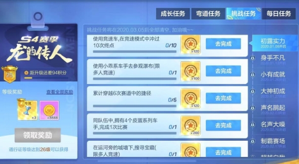 跑跑卡丁车手游S4赛季第一周挑战任务攻略