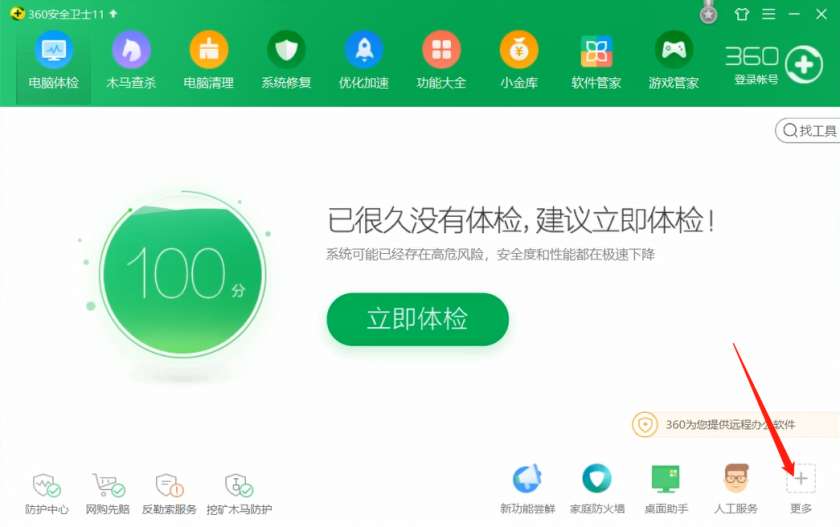 如果不小心删除了电脑QQ记录,首先打开电脑里的360安全卫士,在界面右下角点击更多。