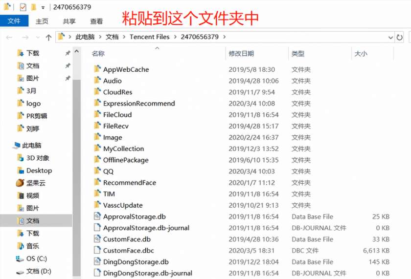 将刚刚恢复的三个文件复制粘贴到这个文件夹中,再将qq重启,聊天记录就恢复了。