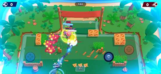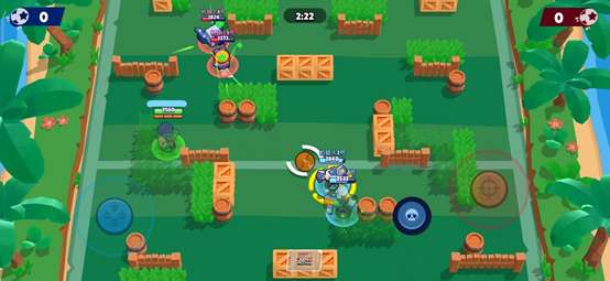 如在超级体育场这张地图中,左边的草丛是最佳的藏身之地,因为刚开局两边射手互相进行试探,附近只有左边两个木桶,会下意识地把这当作掩体,而罗莎只要在敌方向掩体靠拢的时候发起进攻,大多数的情况下都能收掉敌人。此时敌方左边空了出来,配合队友传球可以轻松完成进球。