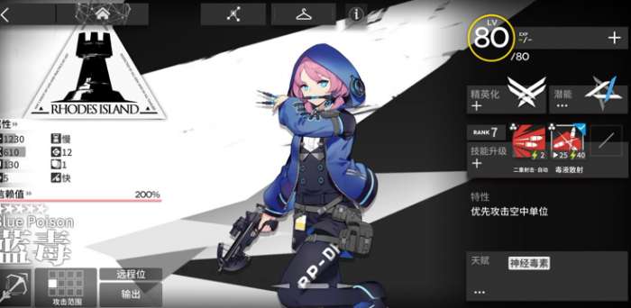 但蓝毒的天赋也确保了她在攻击高防御的敌人时会有更好的表现。