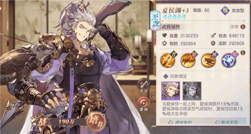 思路:前排曹仁组成的防御可以说是高额免伤,并且拥有控制保证了抗的住的同时降低敌人的输出,后排夏侯渊等人的输出十分稳定并有特效BUFF加成。攻守都比较平衡,综合势力较强。