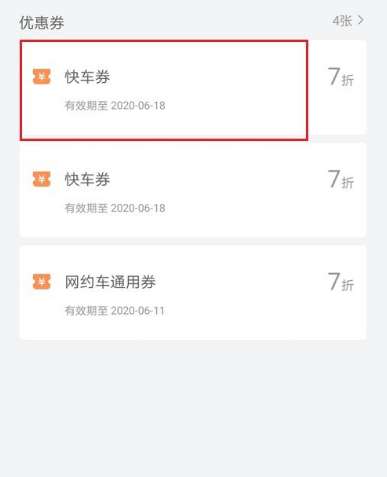 第四步进去优惠券界面之后,可以看到拥有的优惠券,选择要使用的,点击进去,如下图所示: