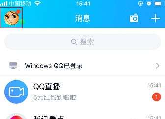 2、进入手机QQ主界面,点击左上角的QQ个人头像进入。