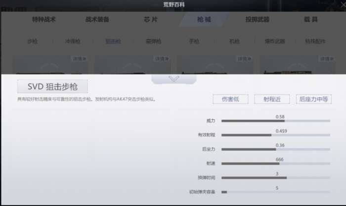 相比于毛瑟狙击枪,SVD狙击步枪的伤害力较小,射程较近,而且后坐力较高。但SVD狙击步枪有一个不容忽视的优点:可以连狙。同时,它的射速快,换弹时间短,适合快速、连续攻击对手。