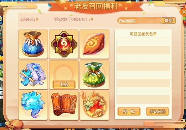 回归活动期间,少侠通过老友接待使,召回自己的好友,即可获得老友积分。