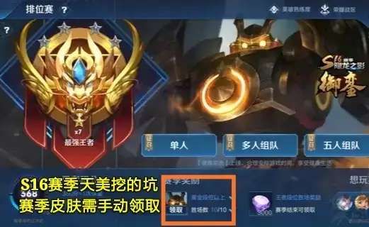 还记得在S16赛季,当时的赛季皮肤是盾山御銮,该赛季是从王者荣耀公测以来,唯一一次需要玩家手动领取赛季皮肤的赛季,到S17赛季更新之后的第一天,才有玩家想起赛季皮肤未领,而除了该赛季以外,每个赛季的赛季皮肤都是玩家达到要求之后,系统自动发放,S17赛季也不例外,正是由于这个小小的细节,让天美在S17赛季更新后的几天里,被玩家一直投诉,后来天美为了弥补玩家,给出了找客服补领皮肤的办法,到现在,都依旧还有玩家在找客服补领赛季皮肤。