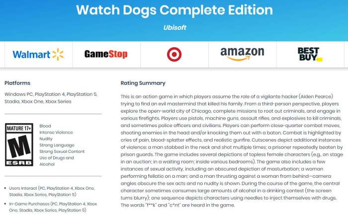 一款名为《看门狗:完整版(Watch Dogs Complete Edition)》的育碧游戏近日在ESRB获得评级(17+),从作品的描述来看,似乎对应的是《看门狗1》的剧情。