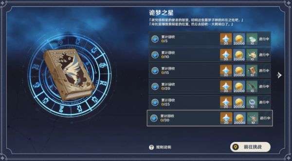 活动期间内,旅行者参与「未知之星」、「诡梦之星」可获得「熄星能量」,完成「命定之星」挑战并消耗原粹树脂可获取「熄星精粹」、冒险阅历!同时,完成「陨星的涟漪」中的任务可获得原石、「熄星能量」与「熄星精粹」。