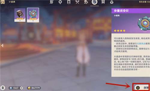 第一步:来到小道具背包界面,选中质变仪图标,点击右下角的“部署”按钮。