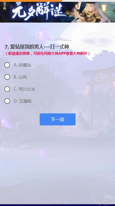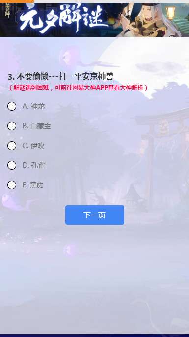 网易大神阴阳师元夕解谜答题活动题目与答案大全: